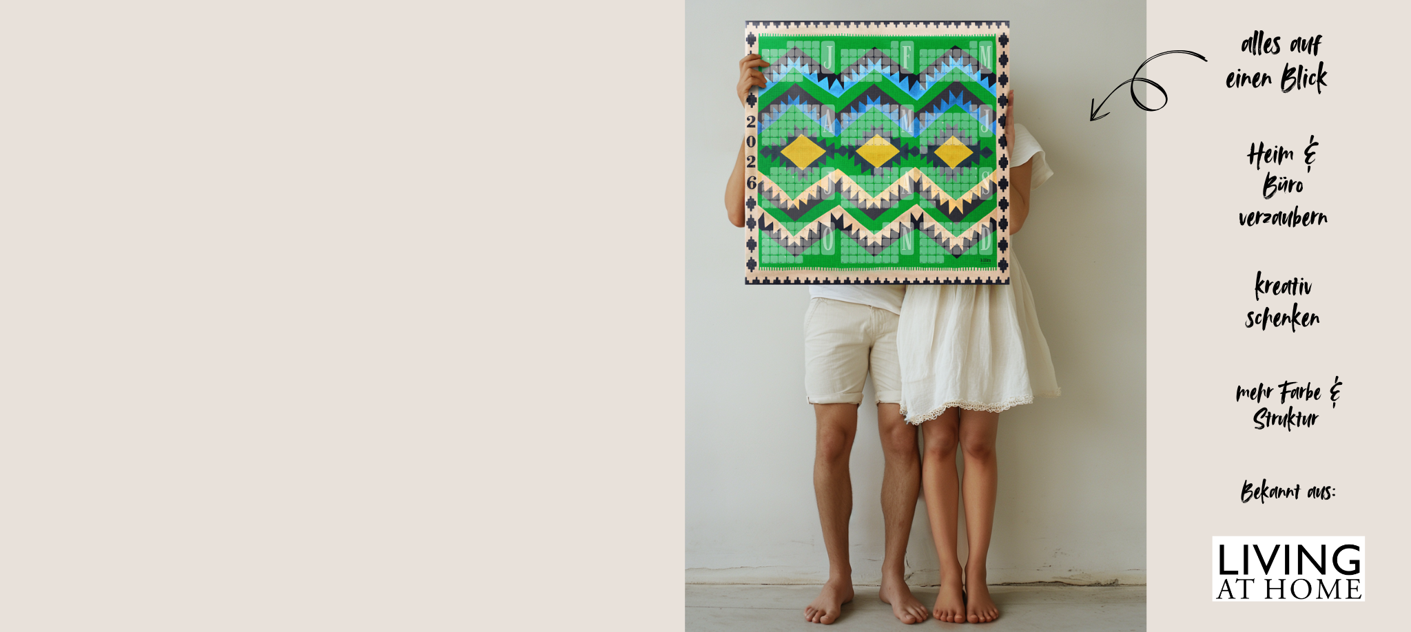 Color, texture, and good cheer – our 2026 wall calendar in Kilim design artfully captures each day, bringing magic to your office and home. The fine, sustainable artist paper creates a tactile experience and is the perfect gift for Christmas and New Year's.
