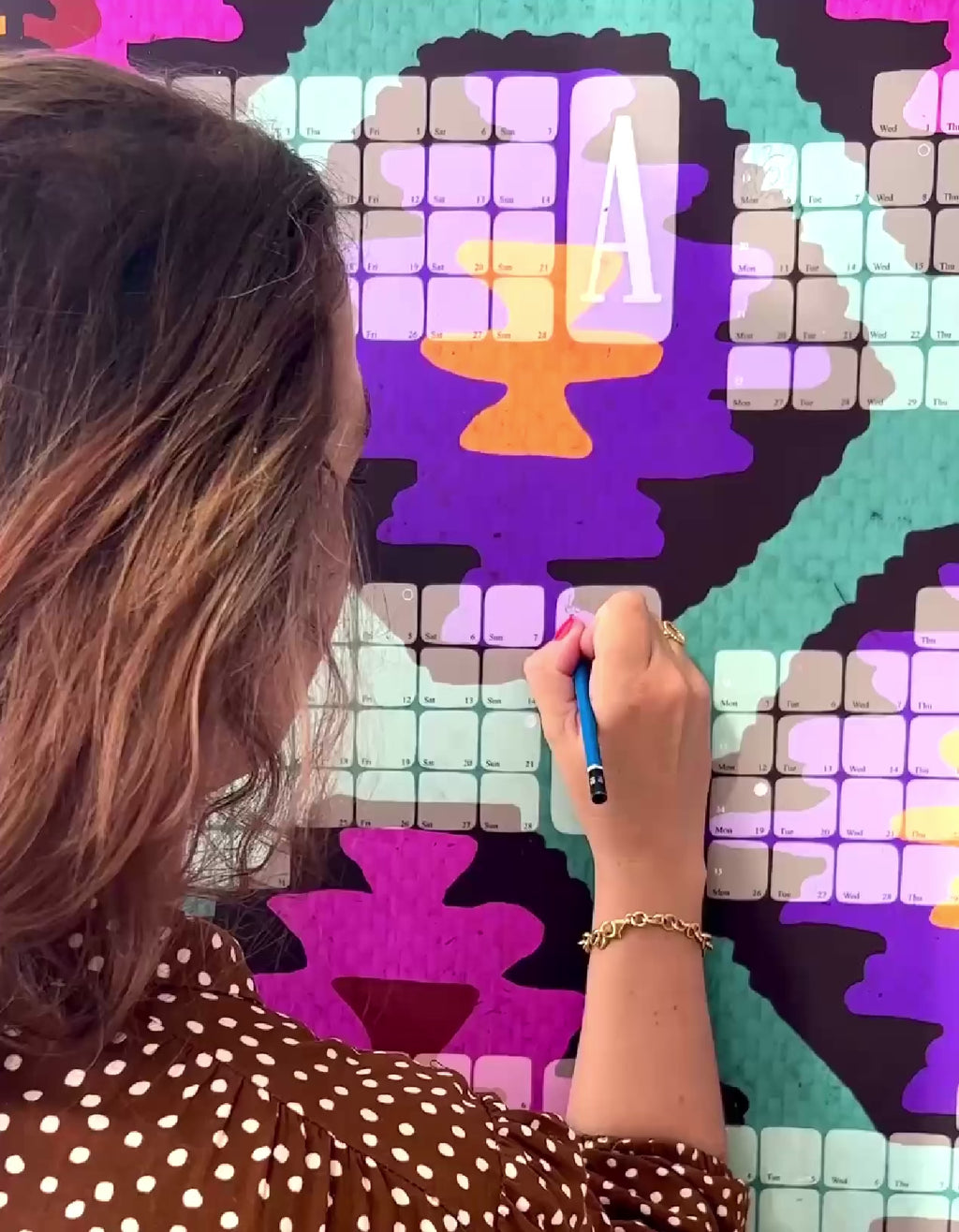Wandkalender 2025 zum Beschriften // Kilim Leo mint - Kilim
